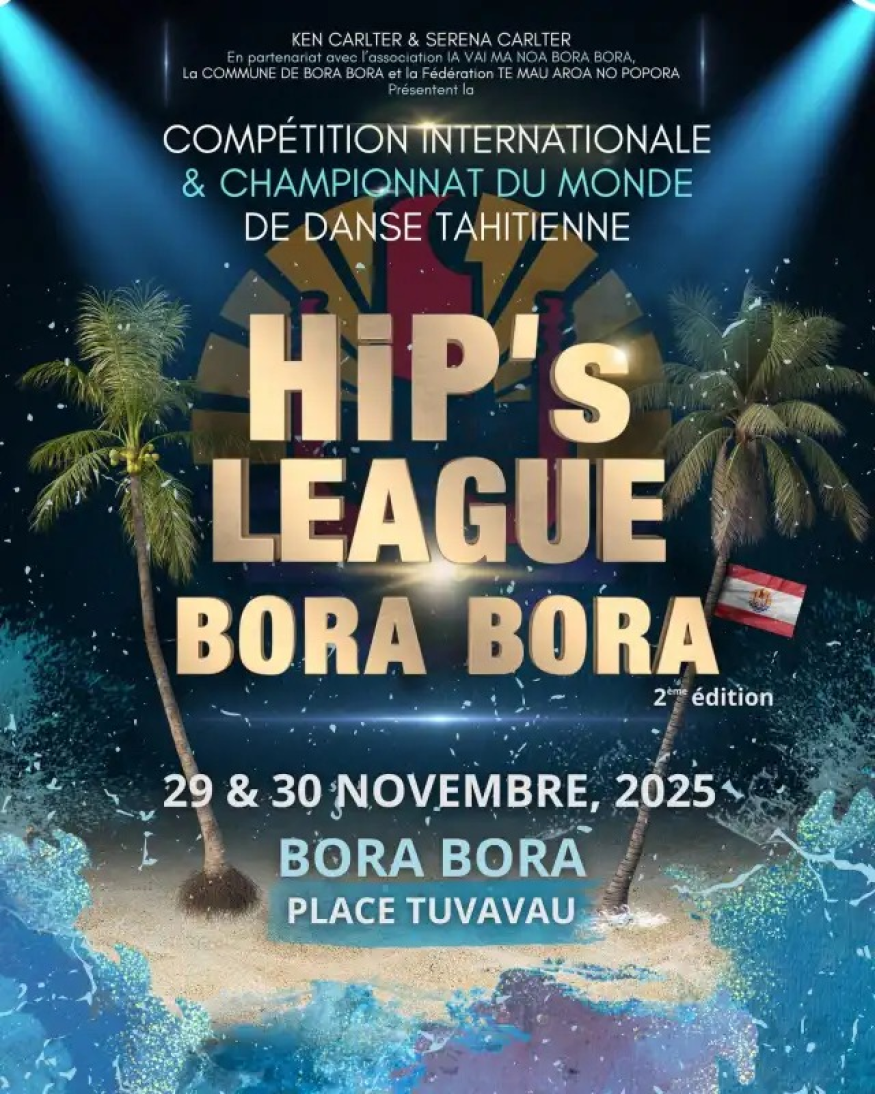 La compétition HiP’s Bora Bora 2025 se tiendra du 28 au 30 novembre à Vaitape, sur la place Tuvavau, dans le cadre du Fare Mata’i.