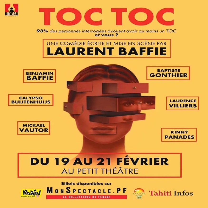 La comédie culte « Toc Toc » de Laurent Baffie sera jouée en trois représentations exceptionnelles au Petit Théâtre de la Maison de la Culture à Papeete, les jeudi 19, vendredi 20 et samedi 21 février 2026 à 19h30.