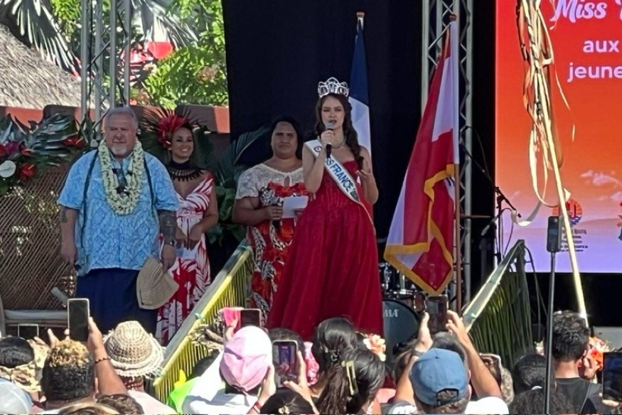 Sept ans après le dernier sacre d'une Miss Tahiti, le fenua célèbre sa Miss France 2026 sous le thème de la jeunesse engagée. Accompagnée de quatre groupes marquisiennes aux chants et percussions, la parade a duré plus d'une heure.