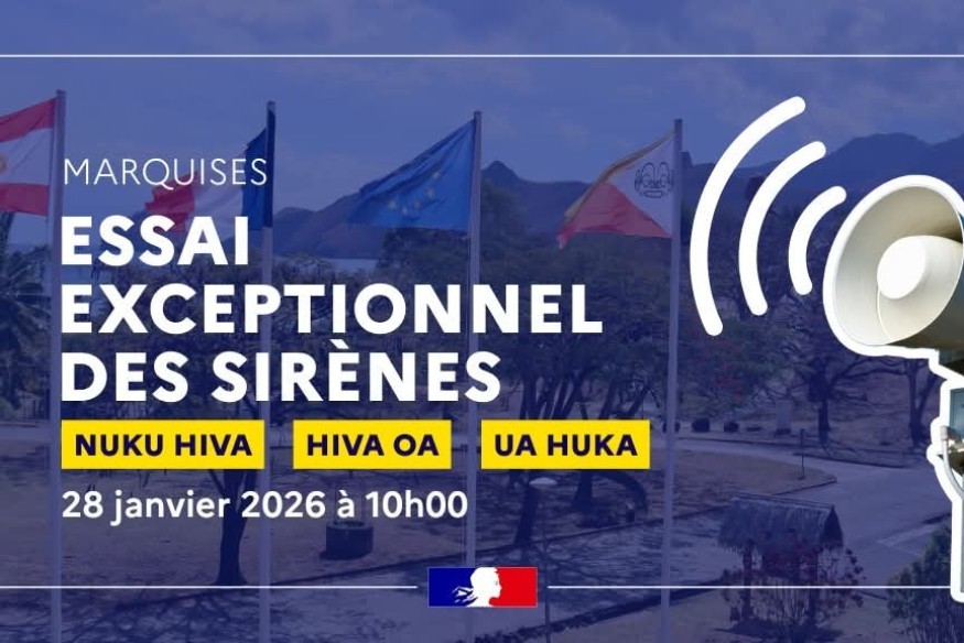 Le haut-commissariat de Polynésie française annonce un essai exceptionnel des sirènes d'alerte mercredi 28 janvier 2026 à 10 heures aux Marquises.