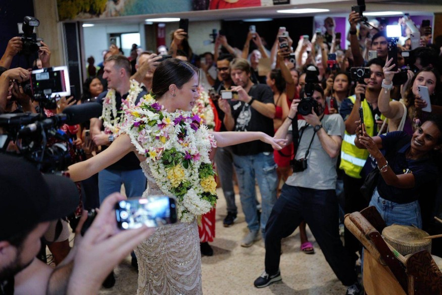 L'aéroport de Tahiti-Faa'a s'est transformé en scène de liesse collective : tambours marquisien, danses traditionnelles, foule en délire ont accueilli leur superstar comme une reine revenue parmi les siens.