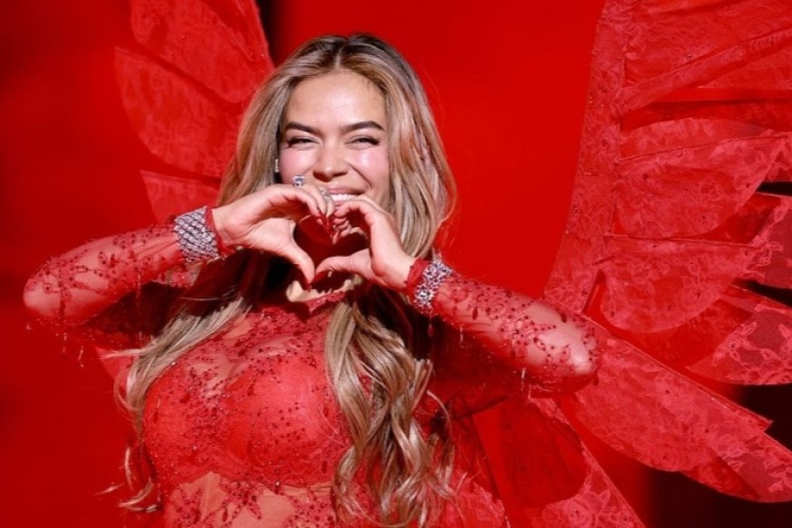 Revêtue d’une combinaison rouge transparente ornée de cristaux et portant les emblématiques ailes Victoria’s Secret, elle a incarné avec puissance la fierté latine, faisant vibrer le public et les réseaux sociaux.