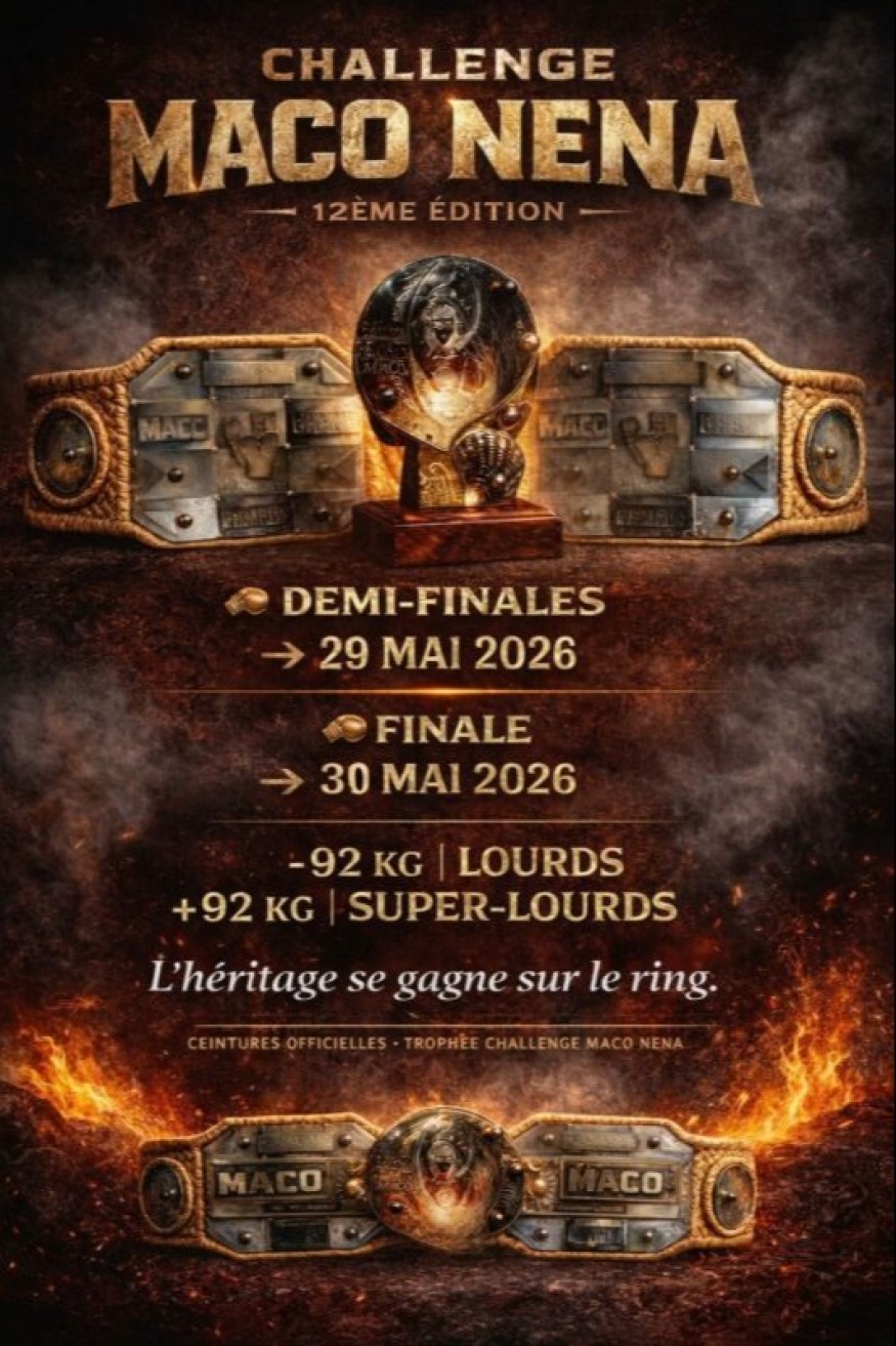 Le Challenge Maco Nena, hommage au légendaire boxeur polynésien, revient pour sa 12e édition les 29 et 30 mai 2026 à la Salle Maco Nena du Stade Willy Bambridge à Pirae. Demi-finales vendredi 18h, finale samedi 22h : spectacle garanti.