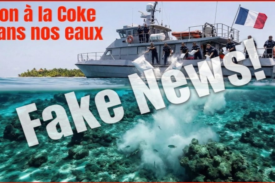 Une image générée par intelligence artificielle prétendant montrer des militaires jetant de la cocaïne dans un lagon du fenua circule sur les réseaux.